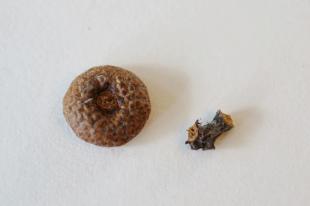 Die „Reststöckchen“ vom Eichelhütchen entfernen und die Innenseiten mit Nagellack lackieren.